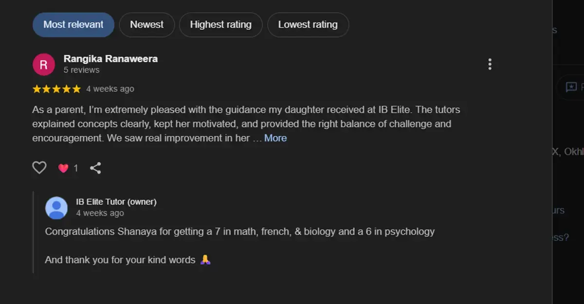 Such feedback reinforces our belief that quality IB tutoring is not about shortcuts, but about clarity, consistency, and commitment.